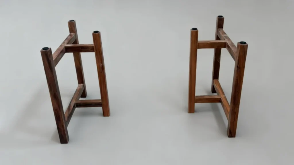 Step1: After unpacking, attach the feet to the metal table legs.