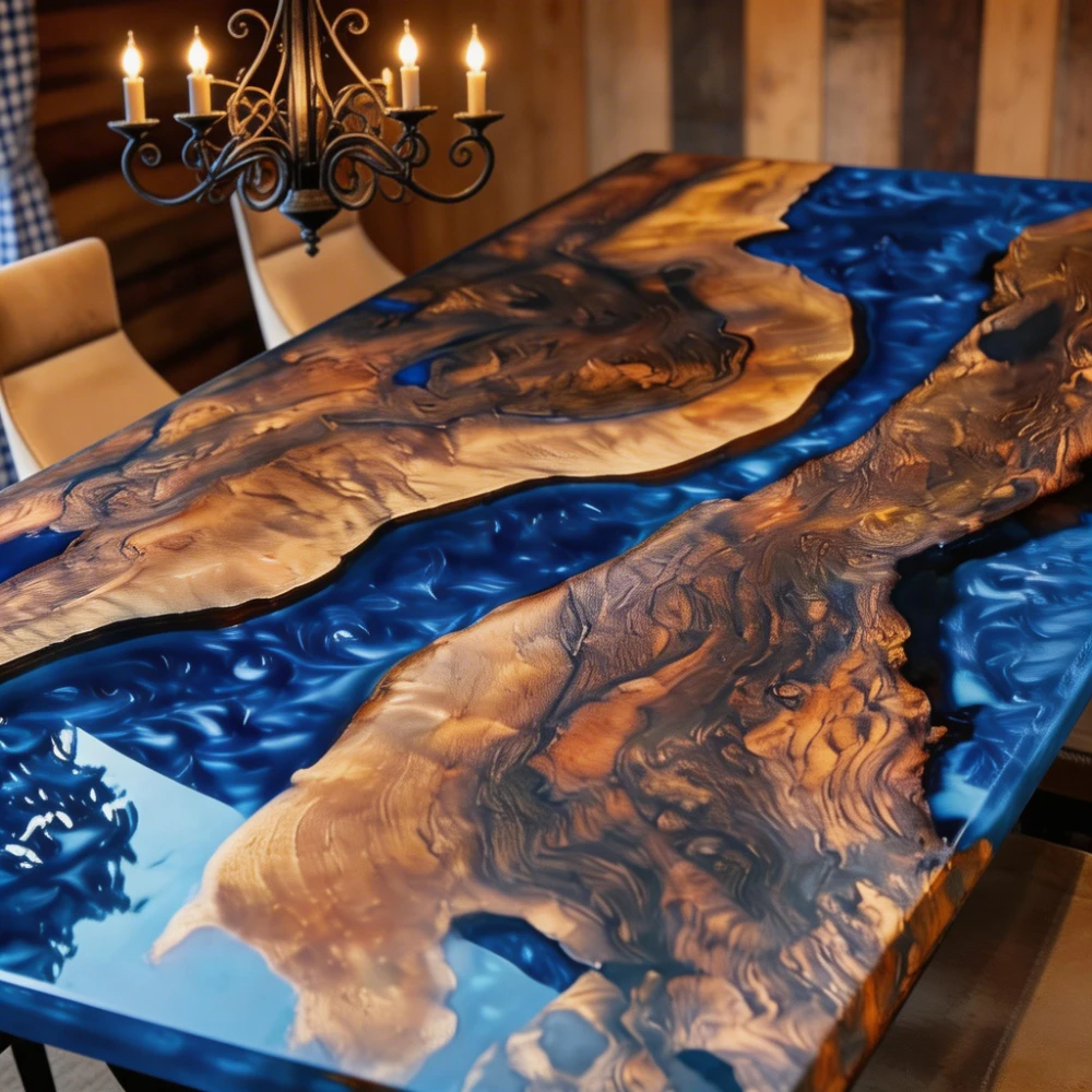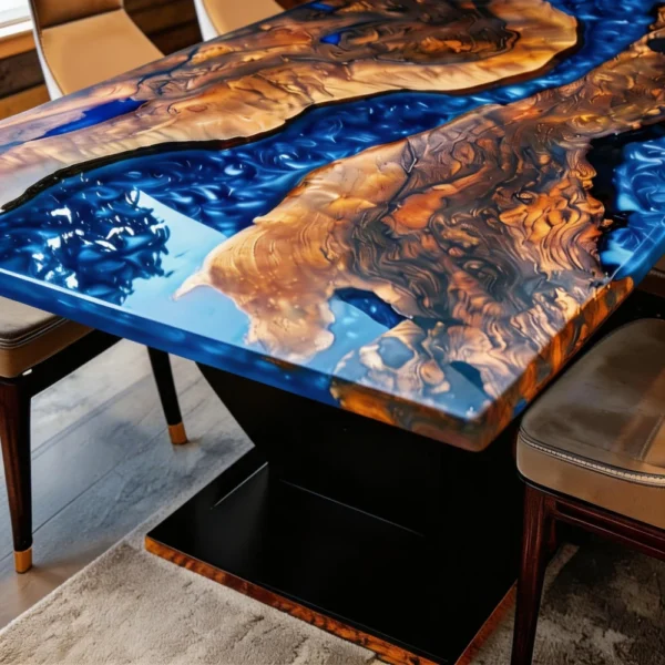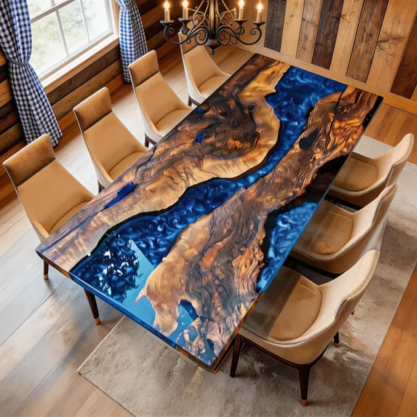 Custom Handmade Black Walnut Blue Swirl Epoxy Resin River Dining Table-HHT-1