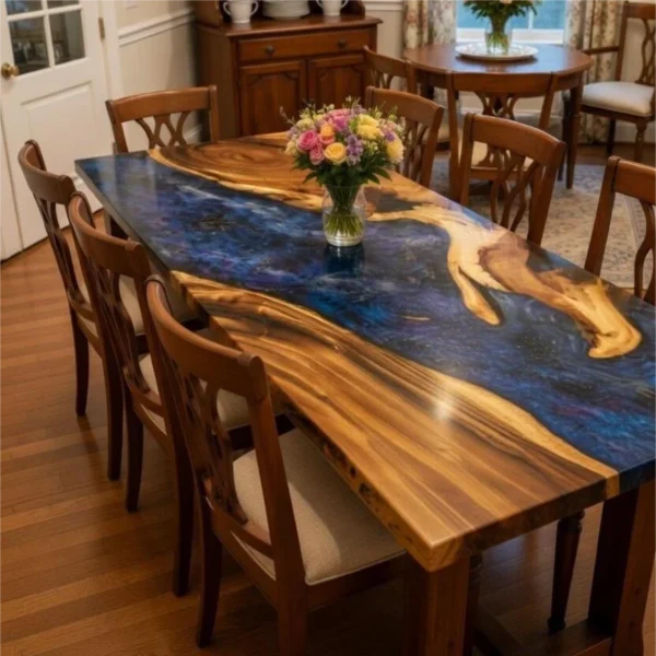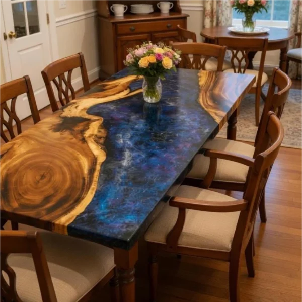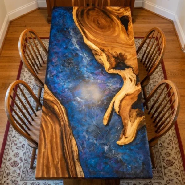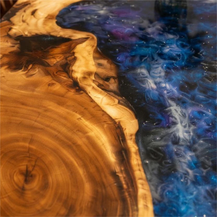 Italian Galaxy Aurora Style Walnut Epoxy Resin Art Table-HTM-5