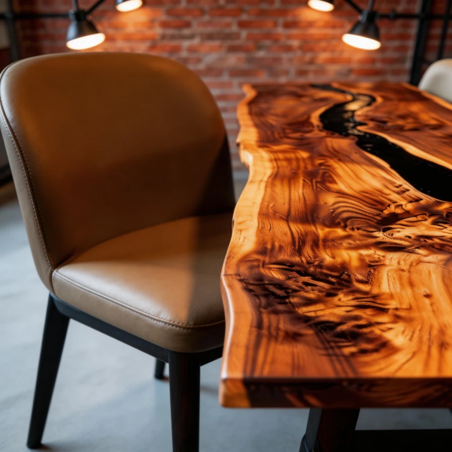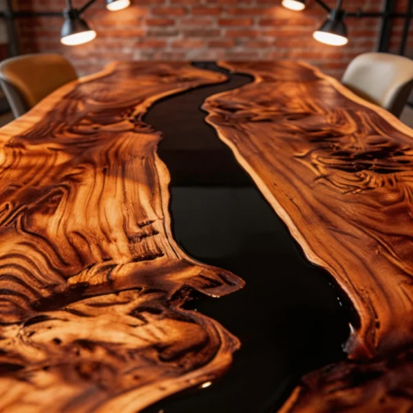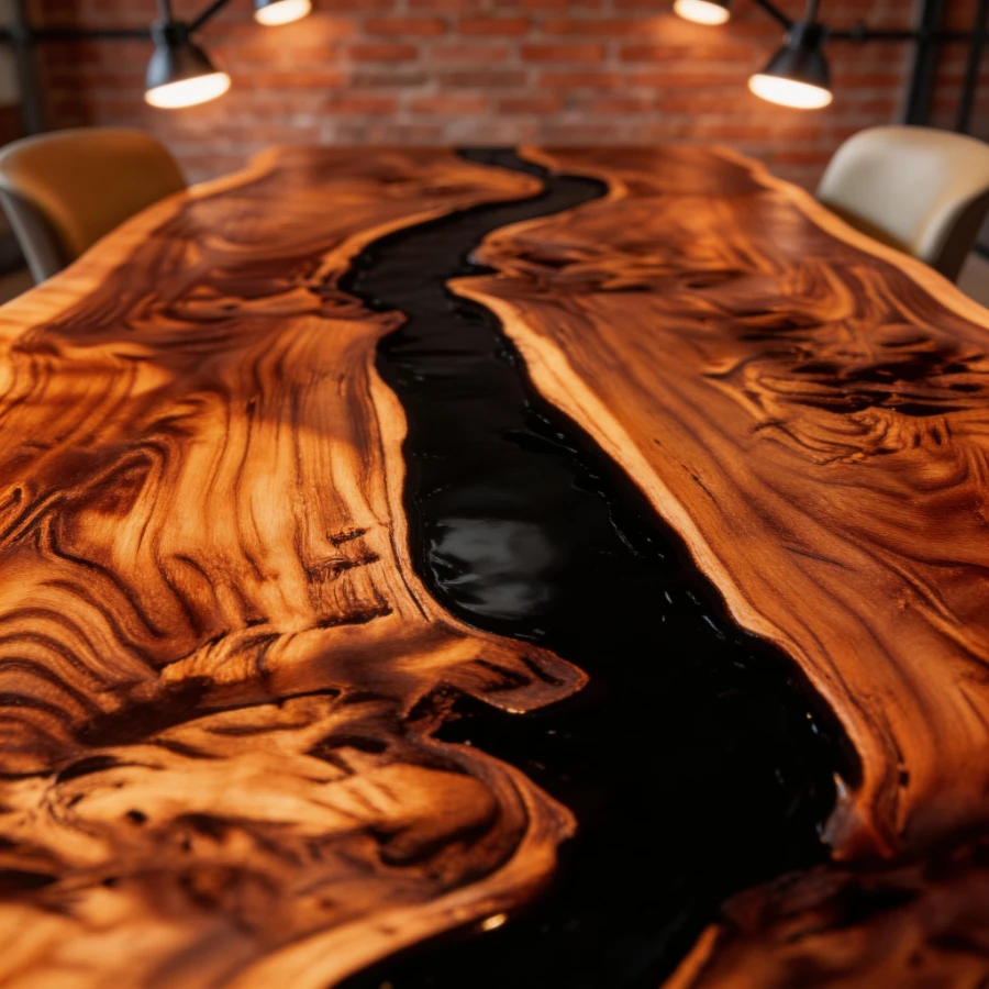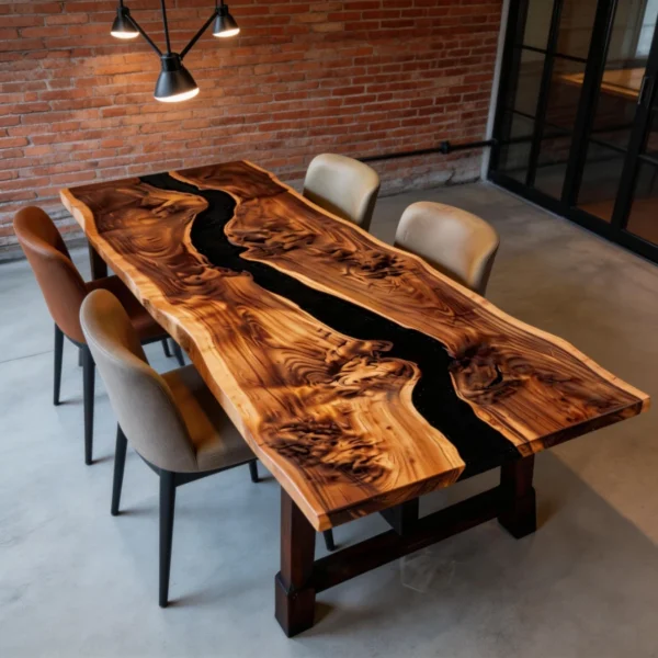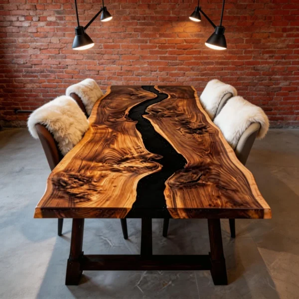 ‌Natural Edge Black Walnut Epoxy Resin River DiningTable-HHT-2